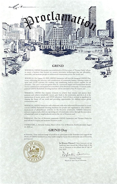 The City of Houston, TX granted us GRIND Day, where we bring sports, technology & culture under one roof.